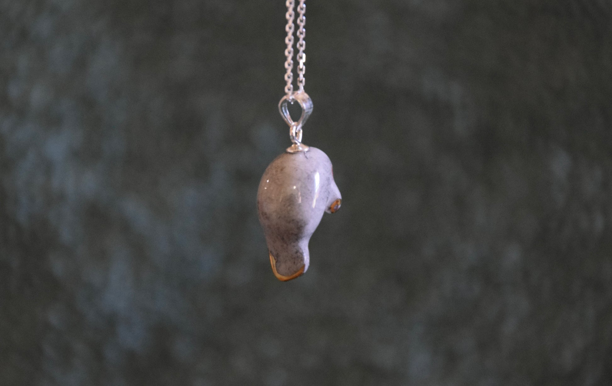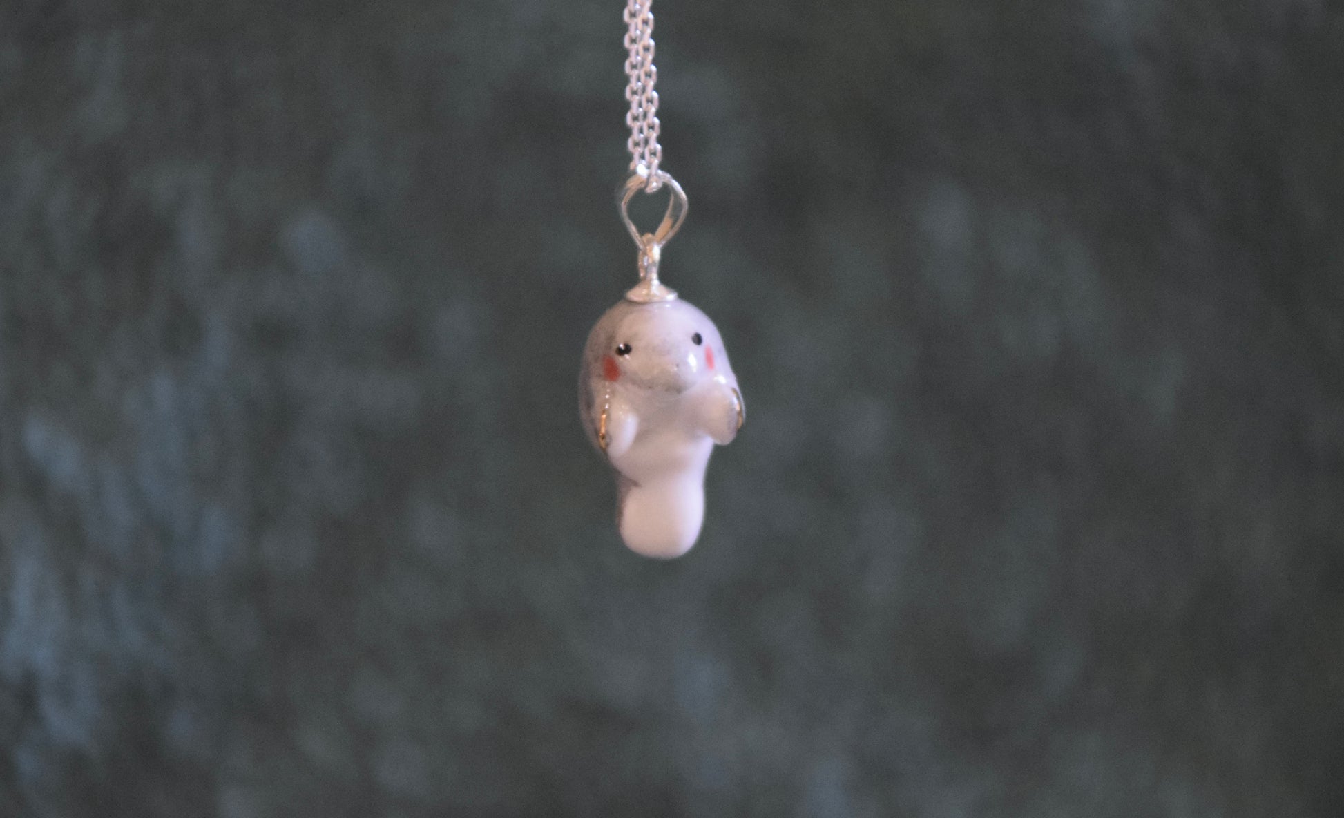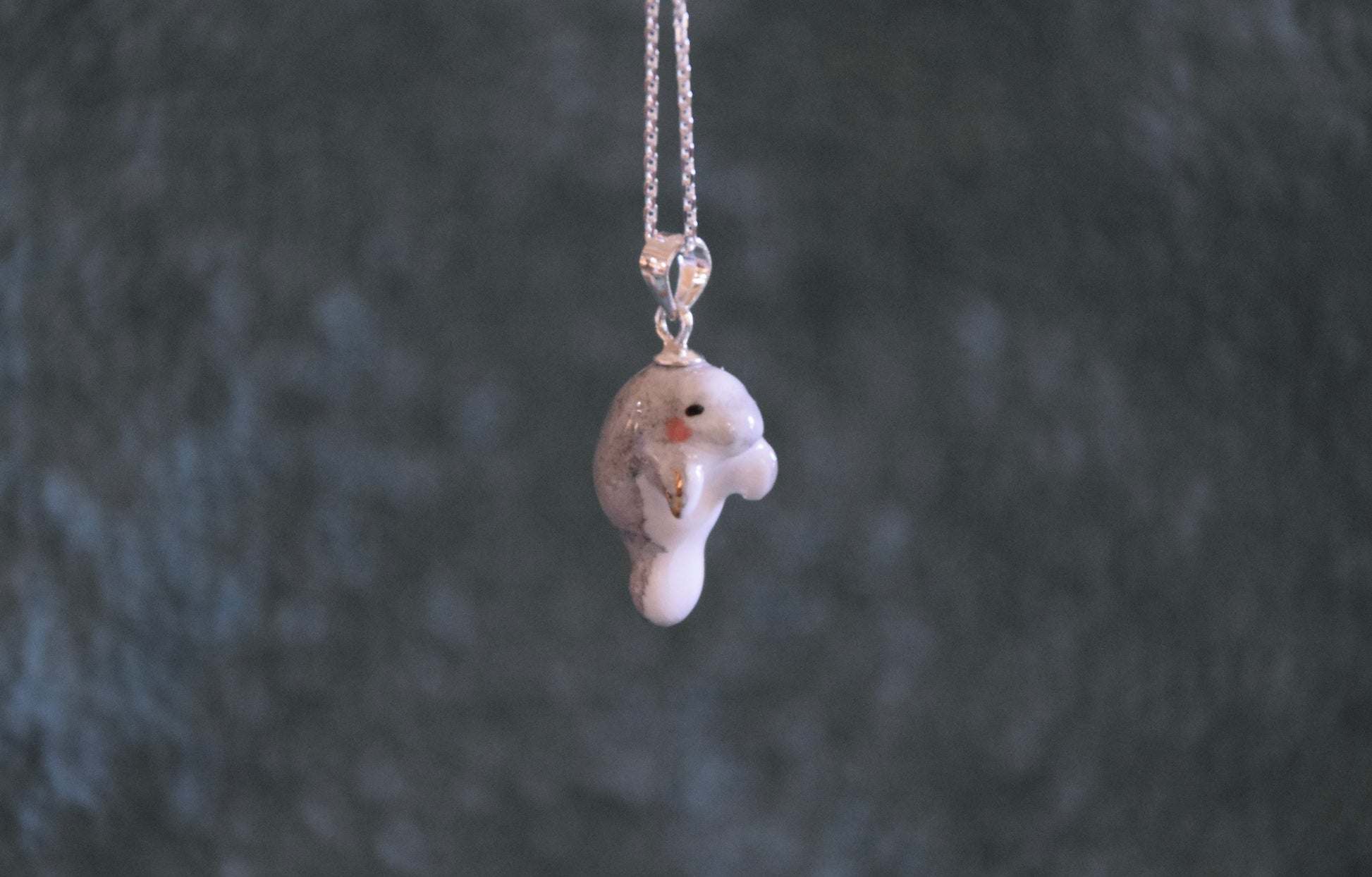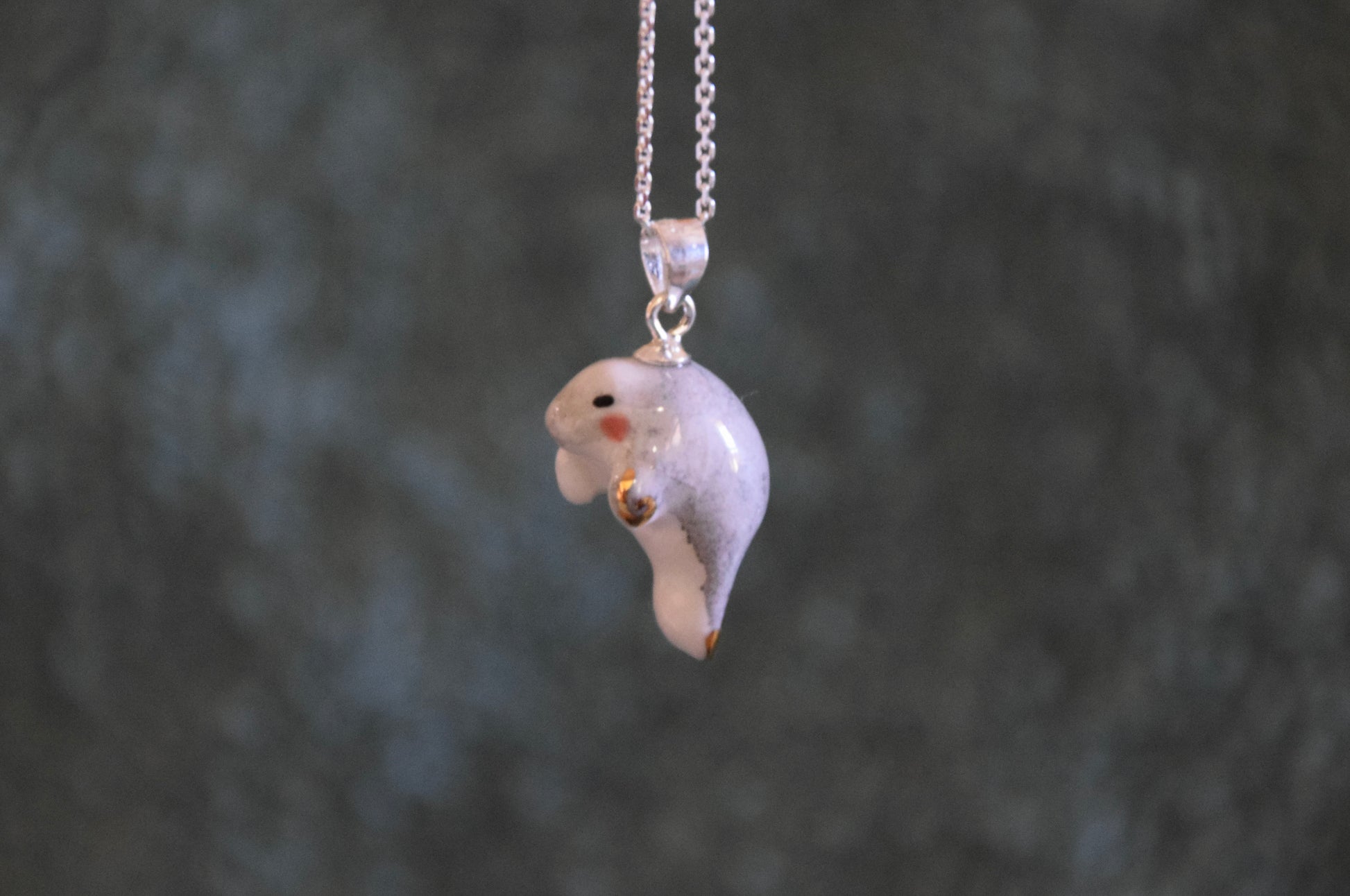 Hand sculpted porcelain Manatee with hand painted gold luster.