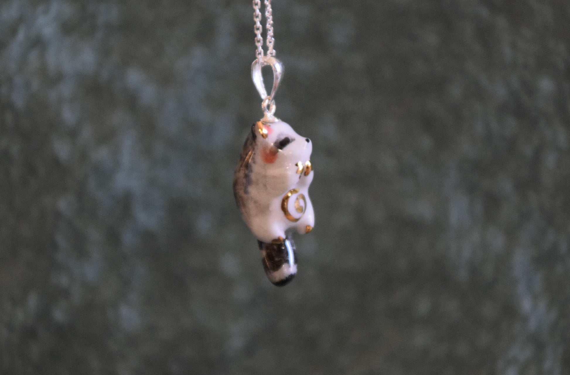 Hand sculpted porcelain Racoon with hand painted gold luster.