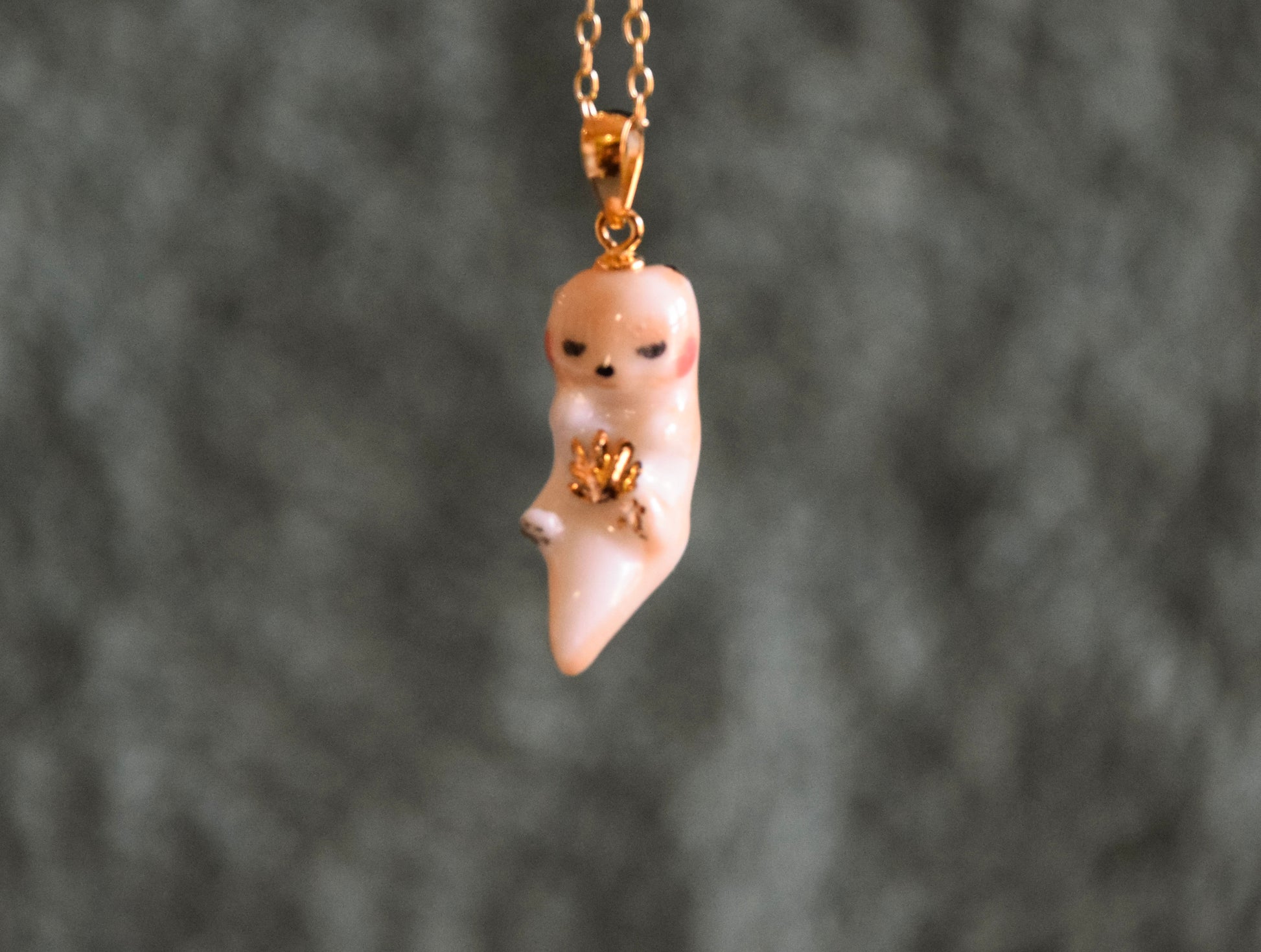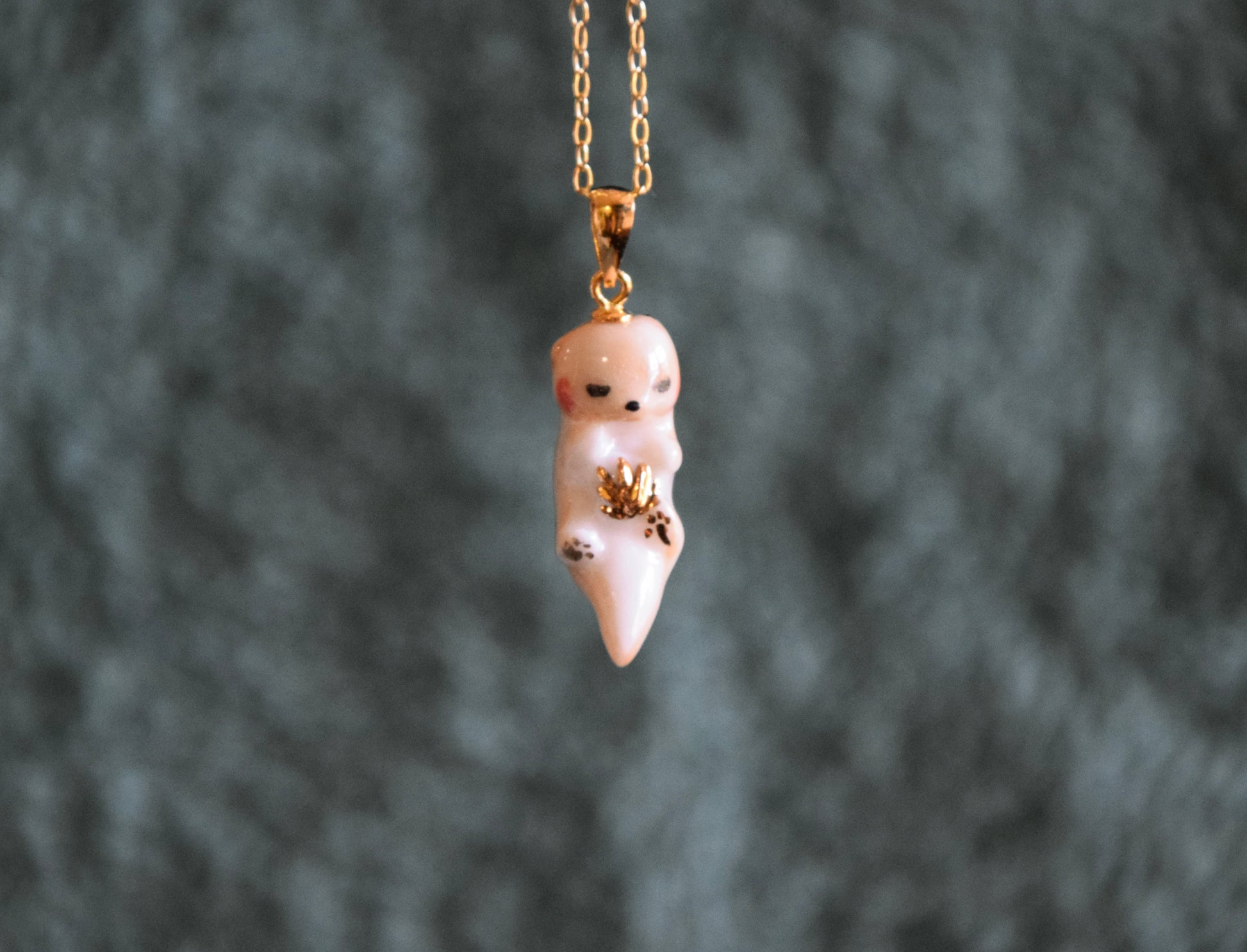 Hand sculpted porcelain Otter with hand painted gold luster.