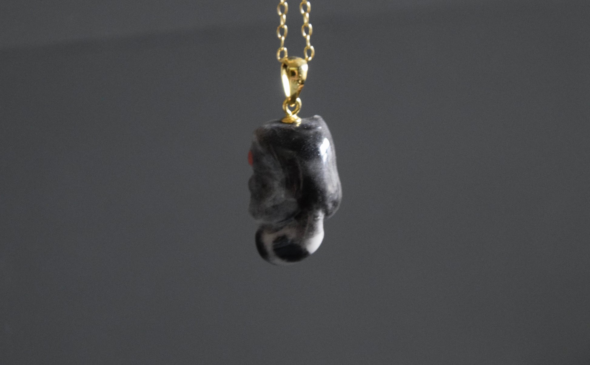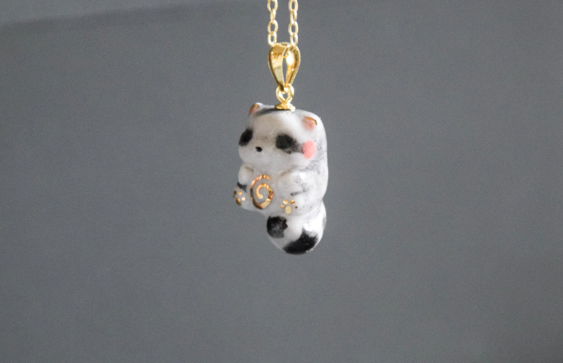 Hand sculpted porcelain Racoon with hand painted gold luster.