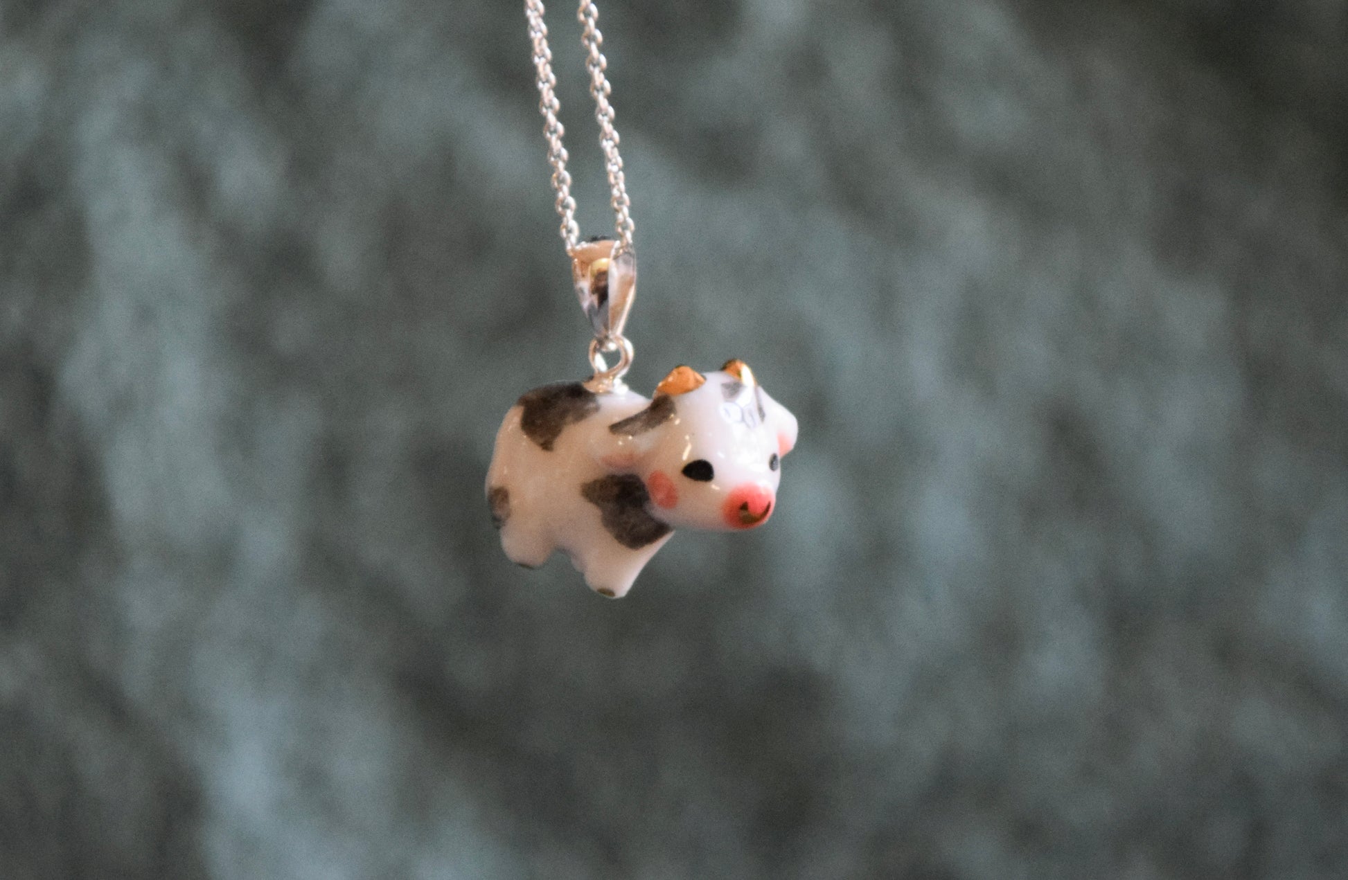 Hand sculpted porcelain Cow with hand painted gold luster