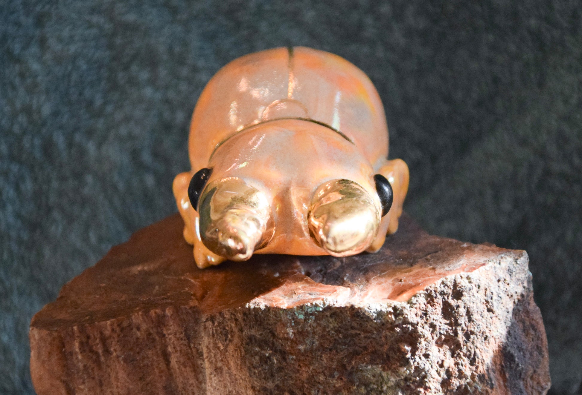 Hand sculpted porcelain Stag Beetle with hand painted gold luster.