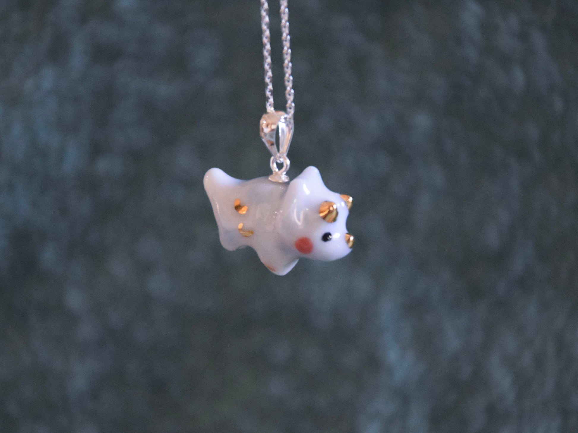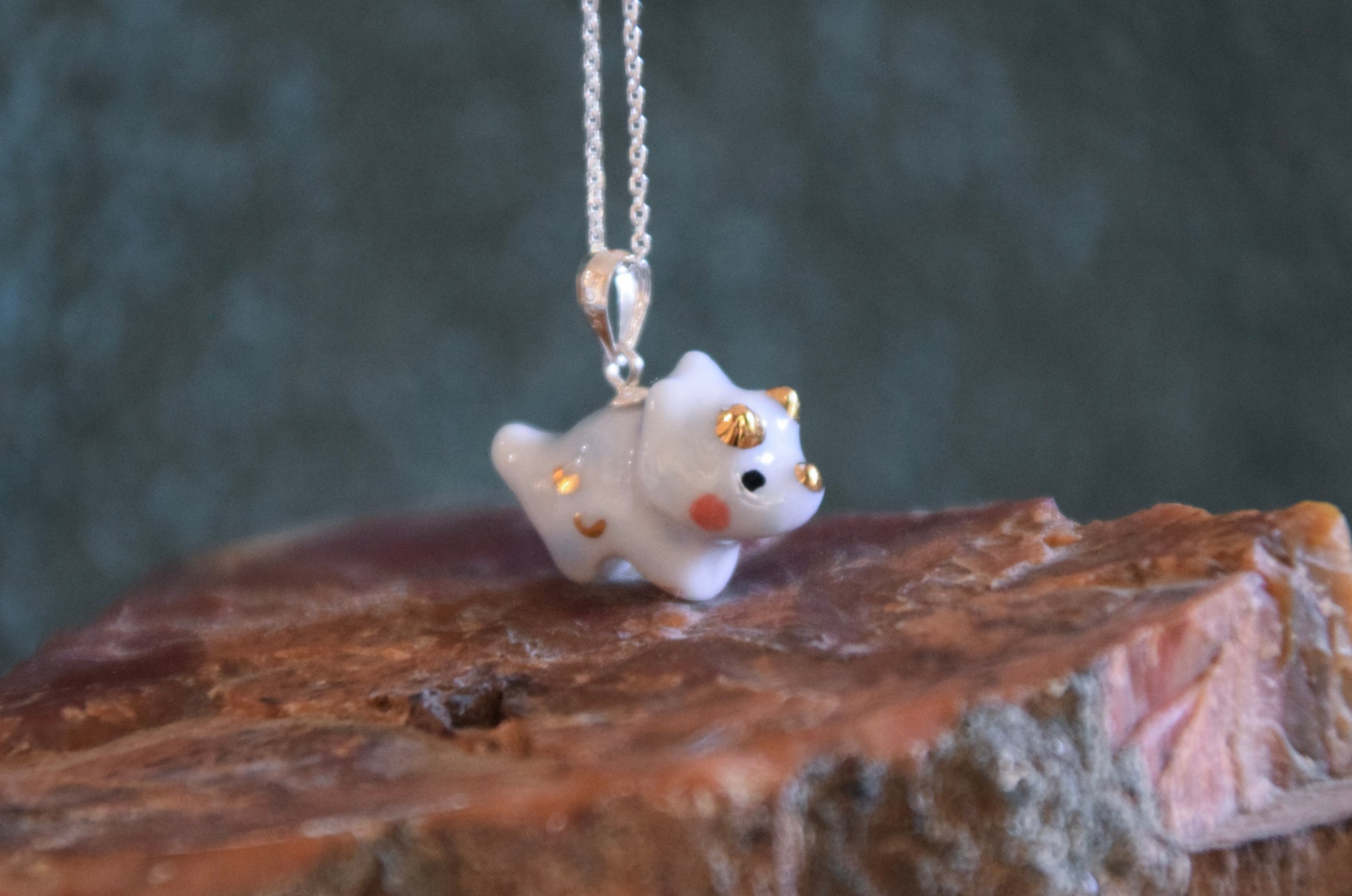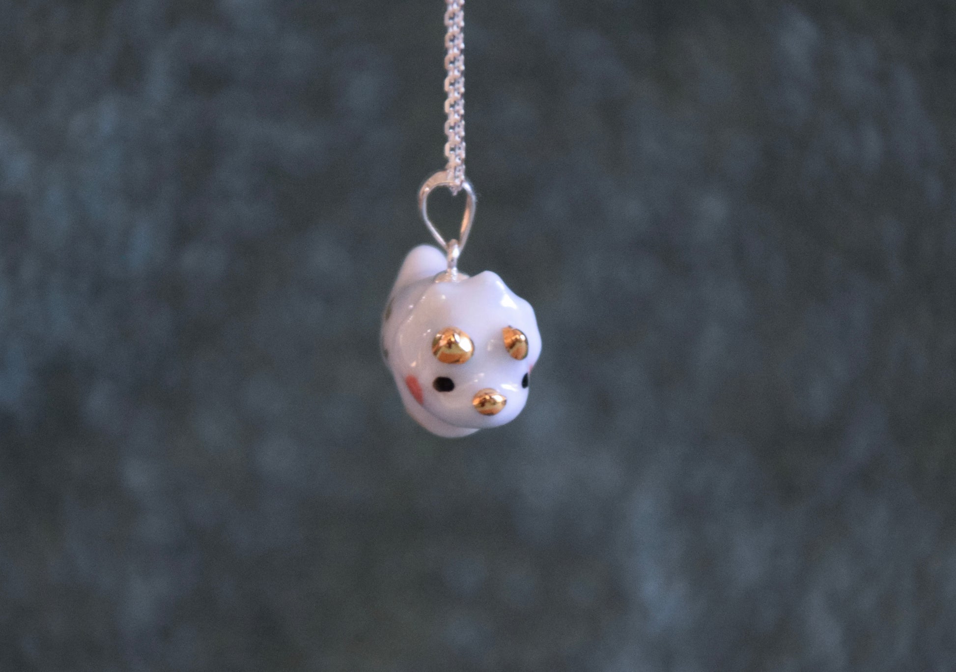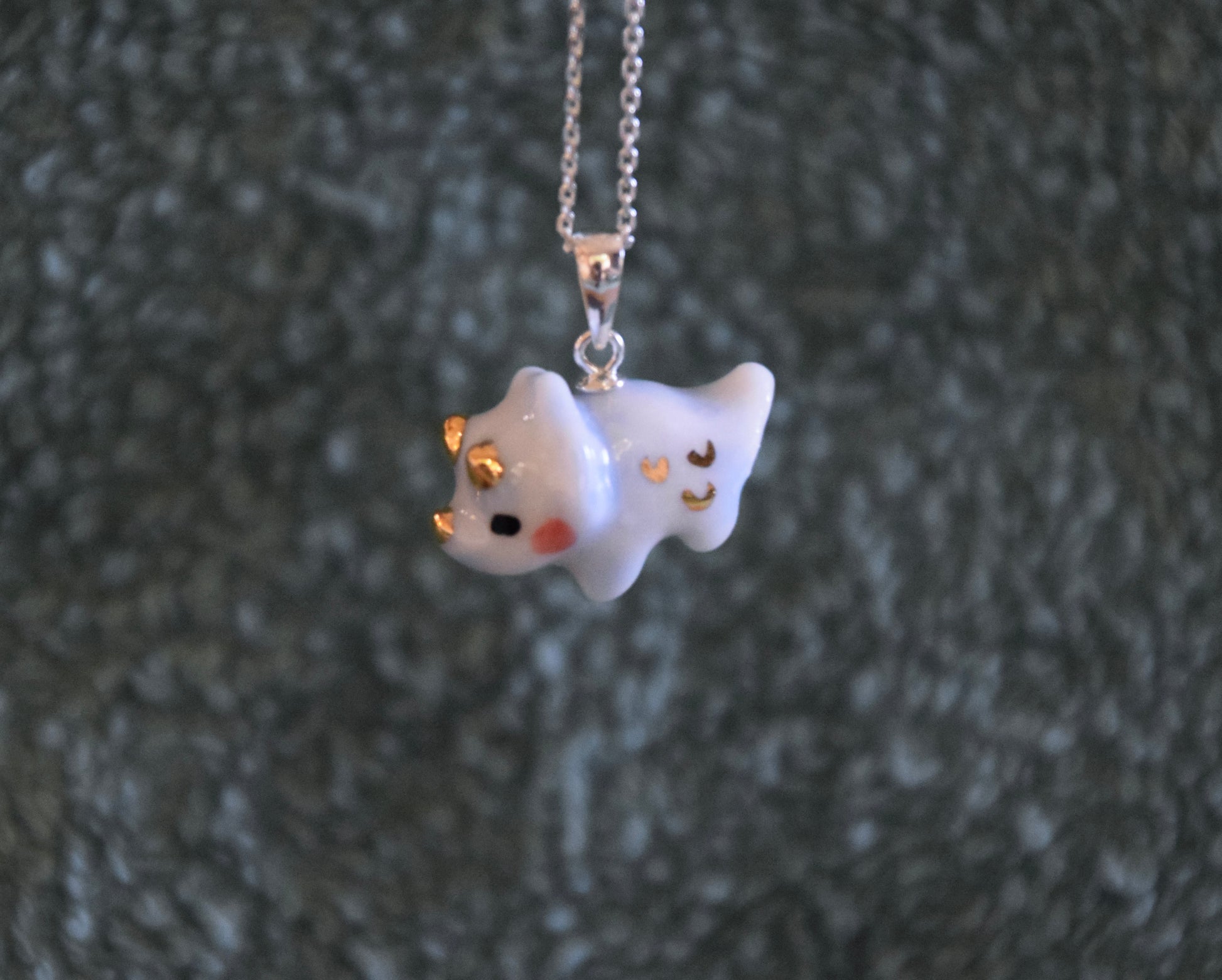 Hand sculpted porcelain Triceratops with hand painted gold luster.